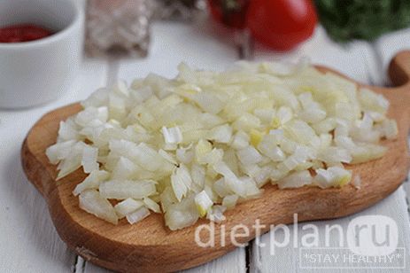 Cibule zbavená slupky, opláchněte, nakrájíme na kostky.