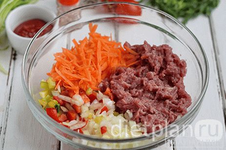 Kombinujte všechny nakrájené zeleniny s mletým krocanem v jednom