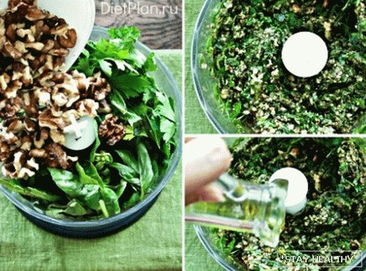Итак, начинаем готовить песто с bazalkaом, петрушкой и