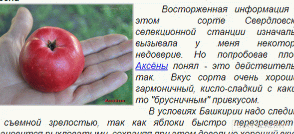 Z letních odrůd lze identifikovat jablko “Aksen”. Má vlastní