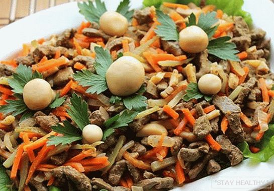 šťavnatá) a játra. V misce na salát míchat nakrájené výrobky,