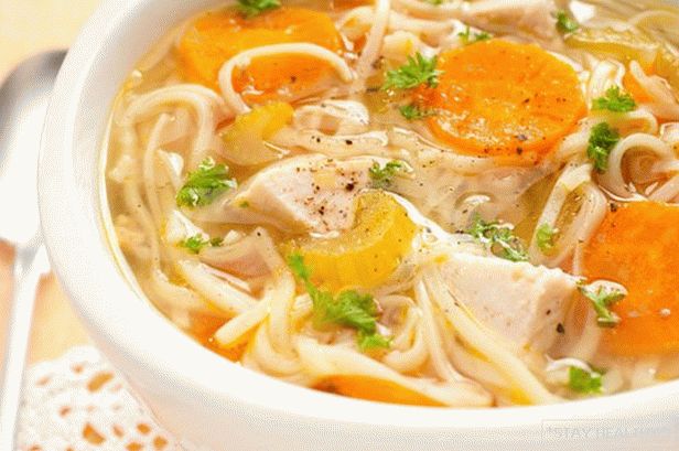 Kuřecí nudlová polévka na oběd na čísle tabulky stravy