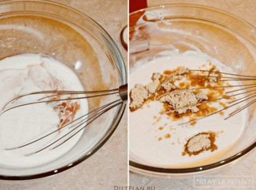 Šlehání jogurt se slivkovým pyré. Přidejte cukr, máslo,