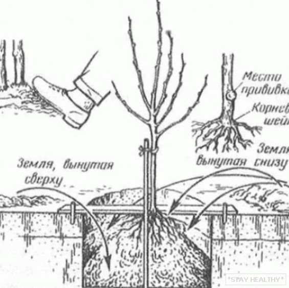 výsadba semenáčků hrušky, je nutné uvolnit půdu v dolní části